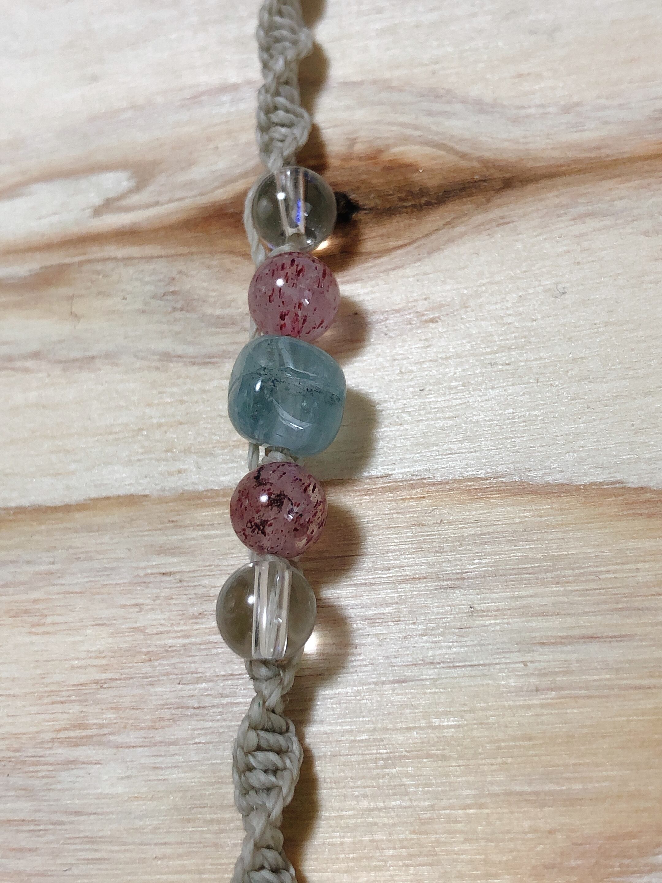 両サイドの赤っぽいストーンは、ストロベリークォーツ、そして、クリスタルです。