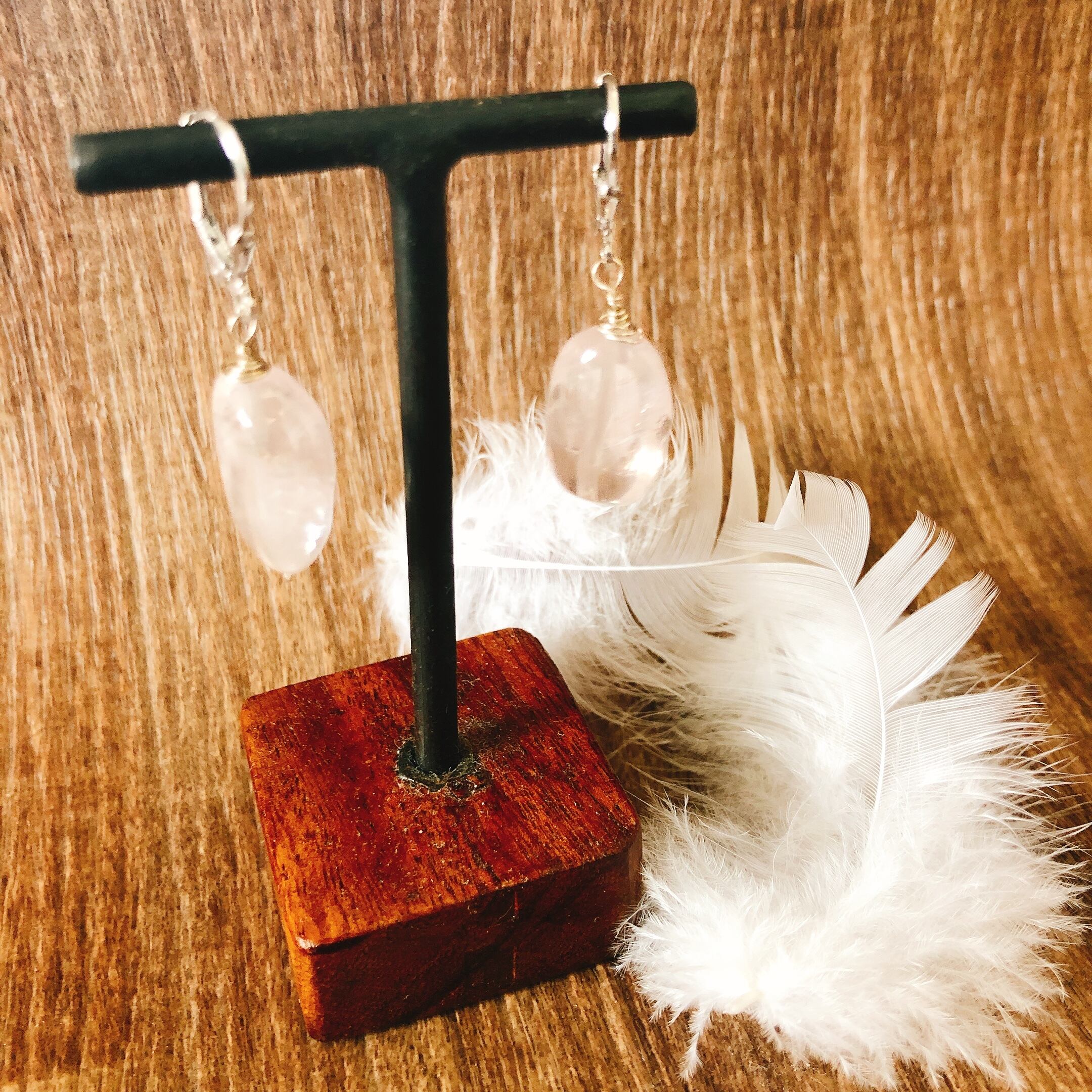 ローズクォーツ大粒ピアスシルバー925ピアス