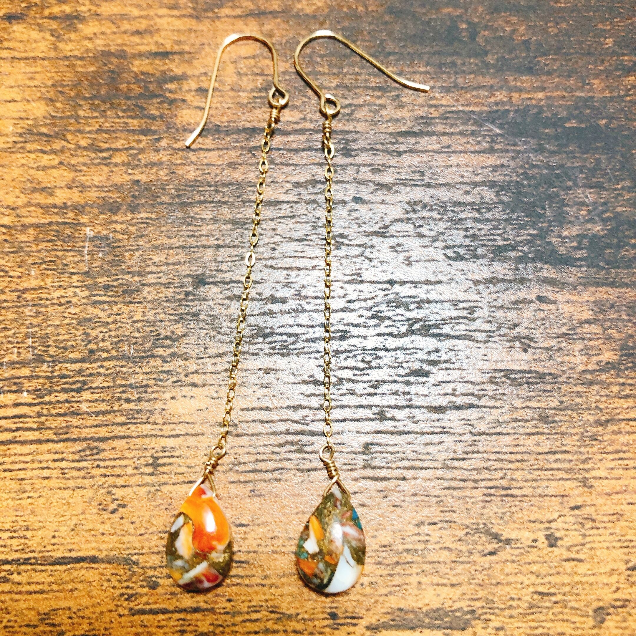 オイスターカッパーターコイズ雫型14kgfピアス
